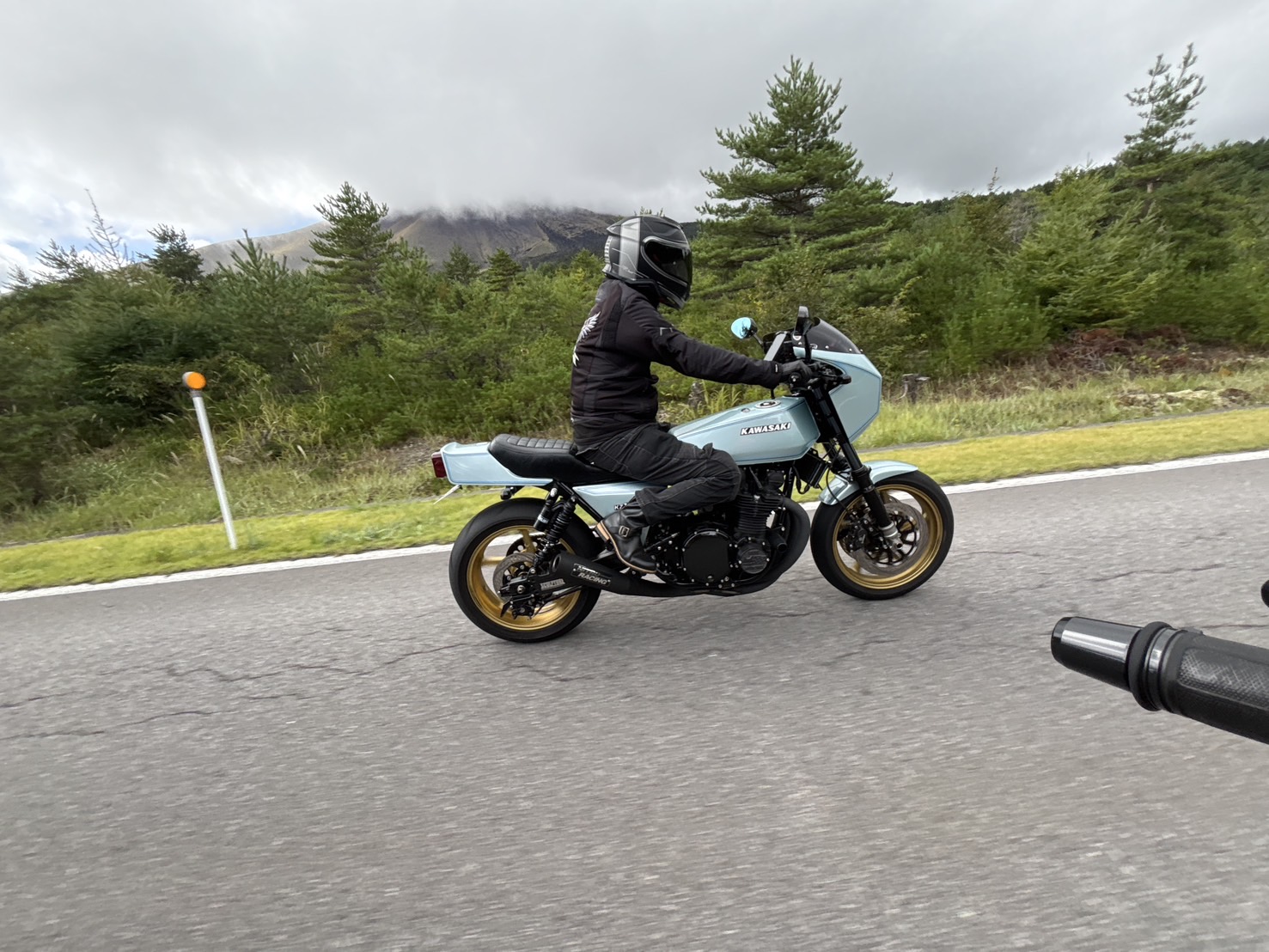 これは変だな、、と止まって確認をと、、ギアを1速まで落としてエンジンを切り、、