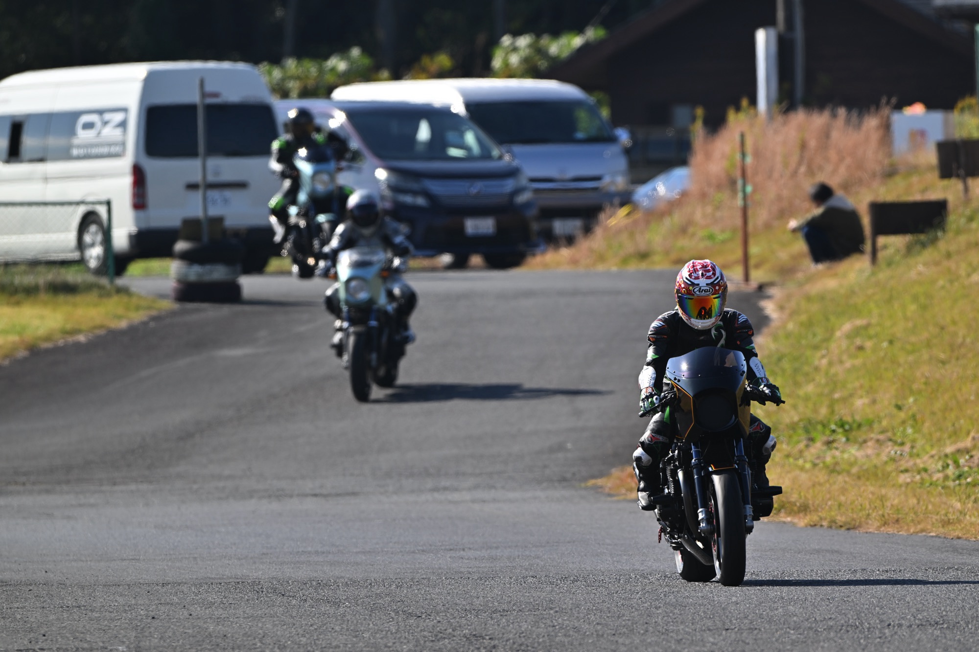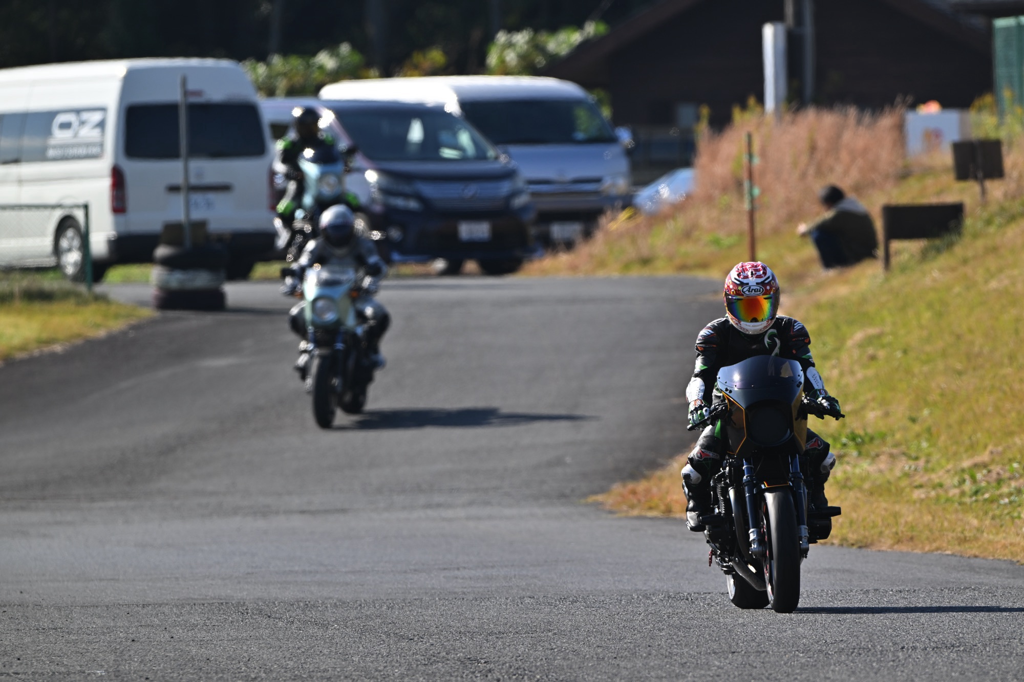 動画担当のヒデオやおなじみ、富樫カメラマンもコースを縦横無尽に動いて撮影してます。